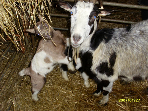 Schafe mit ihren Lämmern und Ziegen mit ihren Zickeln
